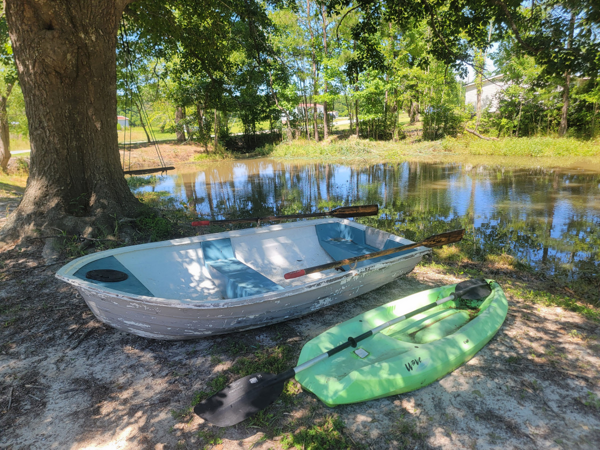 / nightRelax in the country (20 miles to Camp Lejeune) with all the amenities: HOT TUB, POOL, pool table, amazing sunsets and stars at night, a basketball, volleyball, firepit, Grill, stocked Pond with row boat and kayak, trail through the woods, and a large back deck. While visiting your Marine or on a vacay stay at this private piece of paradise (8 Acres), only 20 mins from the main gate or 25 mins from New River. Beach is only 25 Mins away. The little pond is stocked with Bass, catfish, and Brim. Smart TV's in every room. Coffee, basic cooking spices and oil provided, as well as a special gift to say welcome to our home! Very Spacious home with two large living areas, one with a pull out sofa bed. A large, beautiful kitchen, modern farmhouse sink, new countertops. Laundry room, covered back deck entry. Our home sits at the end of a long Country Road, very secluded, surrounded by woods. The pond (shared by one other Airbnb RV at the pond) is stocked with Catfish, Bass, Crappie, and Brim. There is a small boat for your enjoyment. If you like the idea of life in the country but with easy access to beaches, shopping, restaurants, USMC base, this is the place you want to stay. 15 minutes to Jacksonville and Camp Lejeune, 25 minutes to Emerald Isle, 35 minutes to New Bern. You will find the home very clean with lots of space to meet all your needs. Self check in with a coded lock on the back door, no need for keys. There are four bedrooms and two full bathrooms. This is a lot of house! Garden tub in the master bath as well as a stand alone shower. There is another full-size tub in the other bathroom. The road to our home is a gravel driveway. This is a family friendly home with toys, games, high chair, pack n play, kids dinnerware, etc. Lots of room to run and a wooded trail to enjoy. We do provide bikes, but cannot guarantee how well they are left after previous guests. You will have access to the whole house, w/ the exception of one locked closet and one room that we use to store supplies. Access to the entire yard and pond. We will make ourselves available if needed, but will not come around unless you ask. The home sits on 8 acres. It is quiet peaceful living for sure, there are neighbors but at a distance. Only 15 minutes from Jacksonville, Camp Lejeune, and Swansboro. Only 24 miles from the beautiful Emerald Beaches of Emerald Isle. NC Aquarium of Pine knoll Shores is about 35 miles away.
