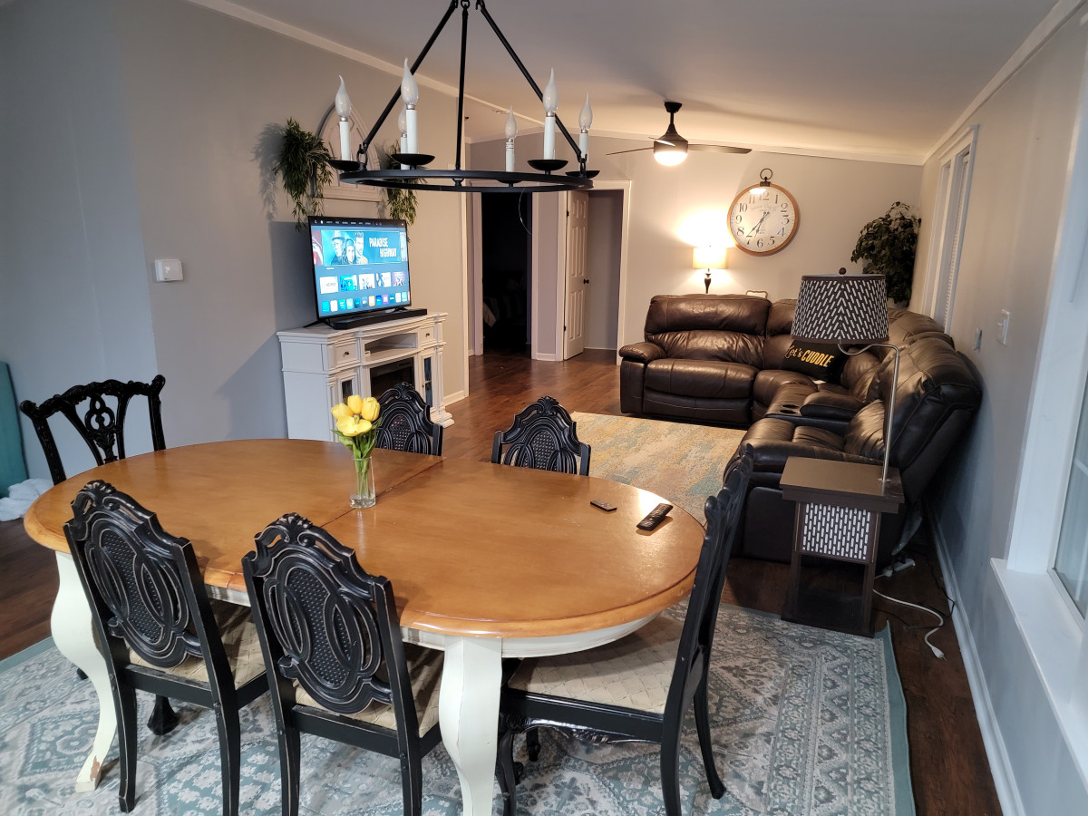 January 2023 5.00We maxed out the house to visit our Marine and his family that lived just up the road. We brought all ages- kids, teens, young adults, grandparents in their 80's, in-laws and a dog. It was super comfy for us all. There was something for everyone to do-shooting pool, fireside, hot tub, games, eat and the chair that everyone wanted to take home! We were all together without being in each other's space. Grandparents watched all the fun from the dining table. We can't wait to return! Perfect mini-vacay place!