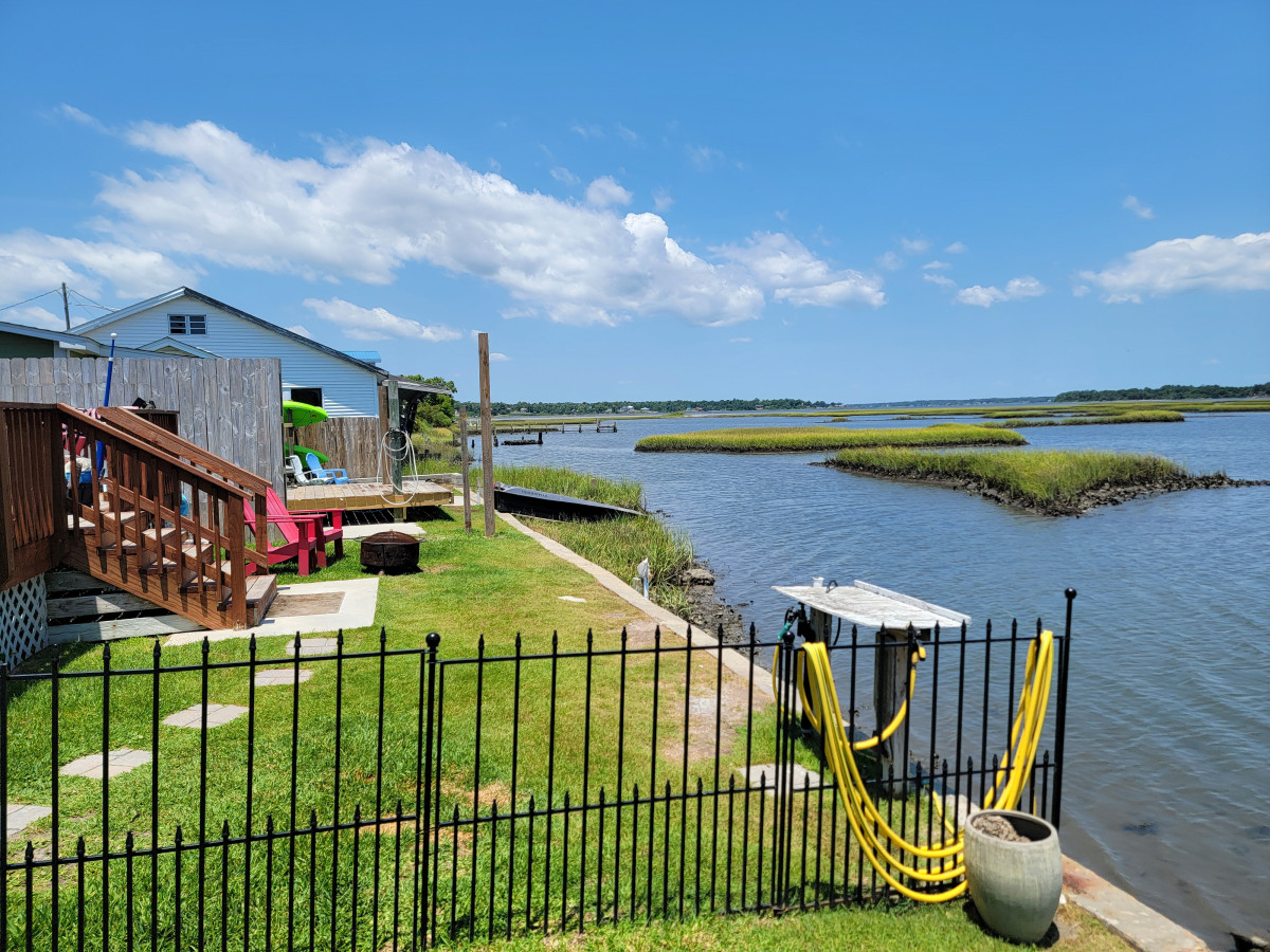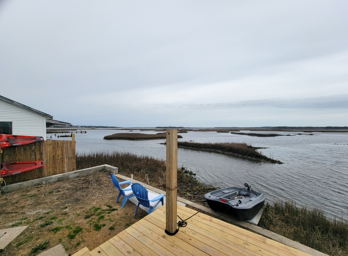 / nightTwo newly remodeled waterfront homes (120 feet waterfront) that can be shared by extended family or friends looking for a waterfront getaway. Kayaks and a jonboats are included with your rental. The larger home has 2 bedrms/ 1 bath, large back porch, and a hottub. The smaller home has 2 bedrms/ 1 bath, back porch, and amazing fishing. Both homes come with fencing to keep the pups in. The fishing in amazing at these spots, plenty of waterfront area to fish from or launch your kayaks. 0.5 miles to Historic Downtown Swansboro, 2.5 miles to the Beach, 20 miles to jacksonville & Camp Lejeune. These homes do sit on a busy road, so there will be road noise in the front, but as you enter the home and back yard, you feel like you are in a little paradise. Homes are separated in the back by a privacy fence, but you can leave the fence gate open during your stay for easier access to both homes. SLEEPING ARRANGEMENTS FOR BOTH HOMES: yellow home: King, two twins, sleeper sofa in sunroom, comfy couch in living room, and an air mattress. Green home: two queen beds, and a comfy twin size cot. Both homes have been recently remodeled with all new appliances and furniture, sheets and linens are provided. There is adequate parking for 4-6 vehicles. You can park beside the yellow house, or in front of the green house, as well as along the front of the old white house, the city does ask that noone park on the sidewalks. Again, we are off of a busy road, so please keep the younger children and pups in the fenced in areas. 2.5 miles to the Beach, Emerald Isle has all the family fun you will want. Beautiful emerald beaches, surf fishing, surfing, swimming, water park, and amazing dining. Downtown Swansboro is full of activities and dining as well. Historical Fort Macon is 25 miles away. Pine Knoll Shores Aquarium is 15 miles away. Camp Lejeune Marine Corps base is 20 miles away. Again, we are on a busy road, and you will hear some traffic noise, but once you enter the home and back yard, you feel like you are on your own little piece of paradise. The sunrises over the water and Marsh is breathtaking. The fishing is the back is incredible, I have filled buckets of shrimp from the back yard, I have also caught red drum, flounder, black drum, eels, rays, and even puffer fish right from the back porch. come and make amazing memories at this location with your extended family or group of friends. An amazing place to enjoy the water. Relaxation and unbeatable views! The gorgeous sunroom has 3 sliding doors for unhindered water views. VIEWS from the hot tub and deck furniture are breathtaking! You will make memories for a lifetime at this place as we have.